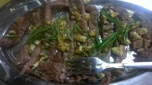La carne che portiamo a tavola è di produzione aziendale. Alleviamo bovini di razza marchigiana, ovini, suini e animali di bassa corte. Potete gustare tante varietà di salumi fatti da noi (salame, prosciutto, lonza, coppa, salsicce secche...) e riscoprire i sapori di un tempo.